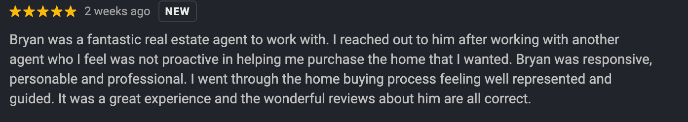 "I went through the home buying process feeling well represented and guided. It was a great experience and the wonderful reviews about him are all correct."